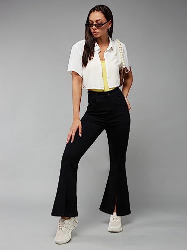 KOTTY Women High Rise Cotton Lycra Straight Fit Full Length Baggy Jeans