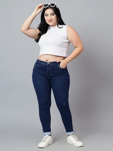 KOTTY Women High Rise Cotton Lycra Straight Fit Full Length Baggy Jeans