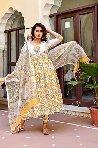 Yash Gallery Women's Plus Size Cotton Gold Printed Anarkali Kurta