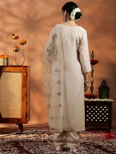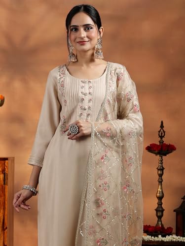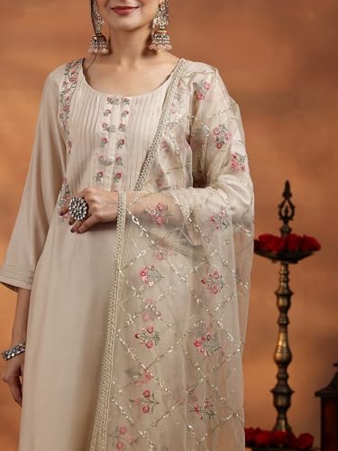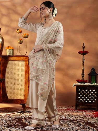 Libas Pink Yoke Design Cotton Straight Kurta With Palazzos & Dupatta