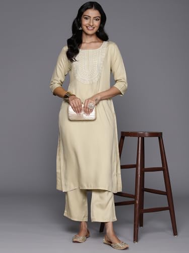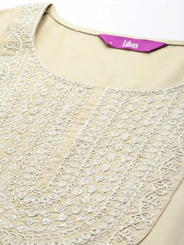 Libas Pink Embroidered Silk Blend Straight Kurta With Trousers & Dupatta