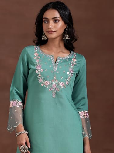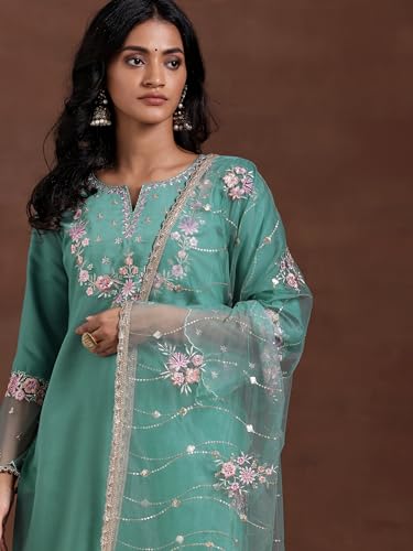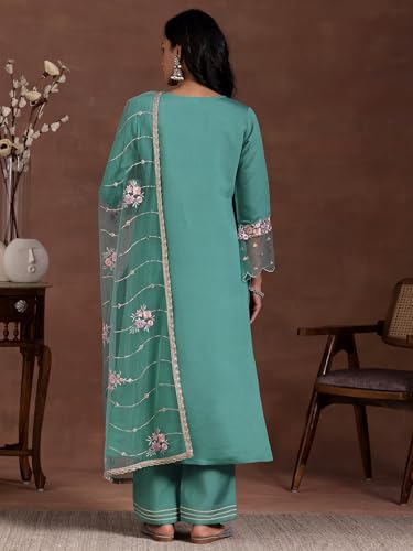 Miss Ethnik Women's Pink Chinon Stitched Top With Dupatta Full Sleeve Embroidered Straight Top (ME-1187)
