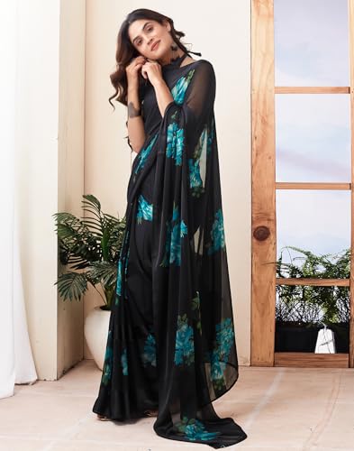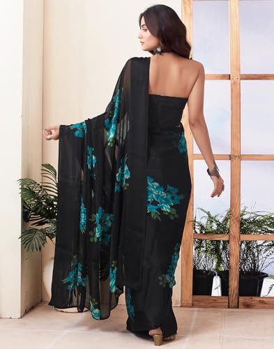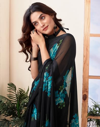 SIRIL Women's Georgette Printed Saree With Unstitched Blouse Piece Combo Pack Of 2