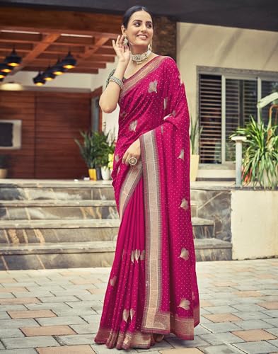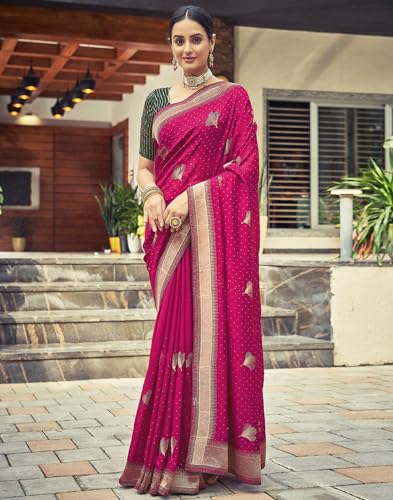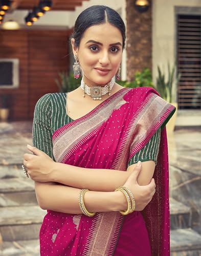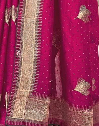 SIRIL Women's Vichitra Silk Hot Fixing Embroidery Border Saree With Unstitched Blouse Piece