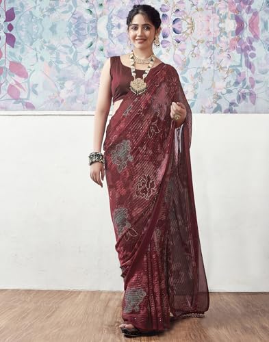 SIRIL Women's Cotton Printed Ready To Wear Saree With Unstitched Blouse Piece