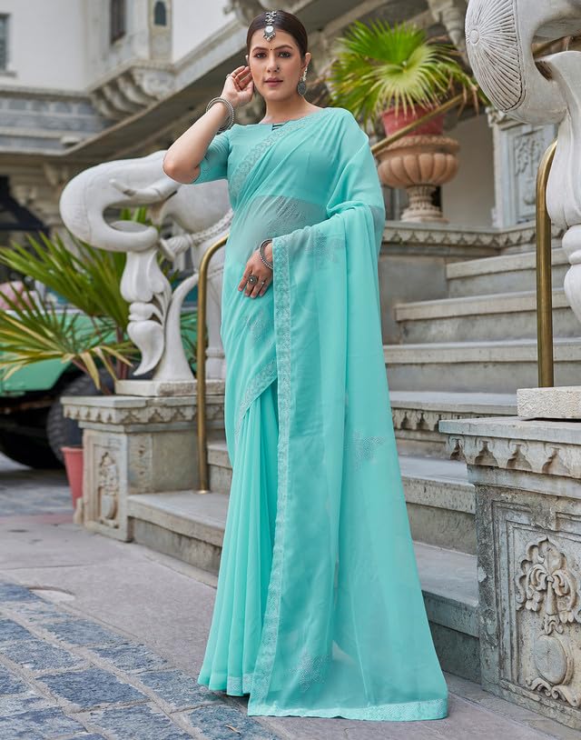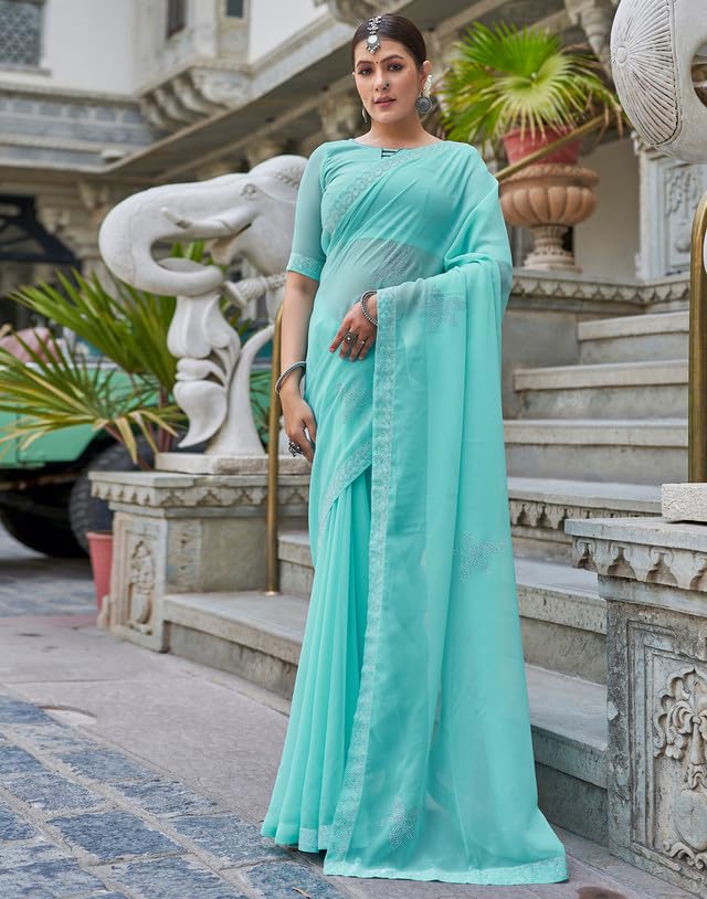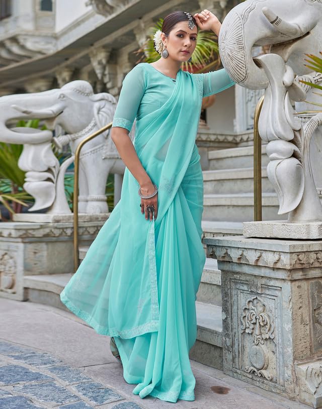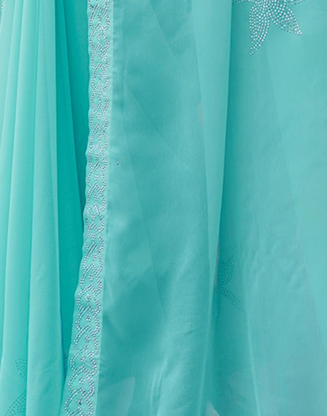 SIRIL Women's Georgette Printed Zari Striped Ready to Wear One Minute Pre Pleated Saree With Unstitched Blouse Piece