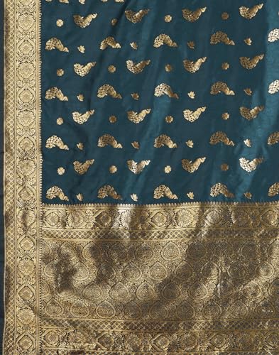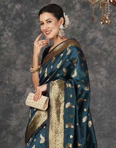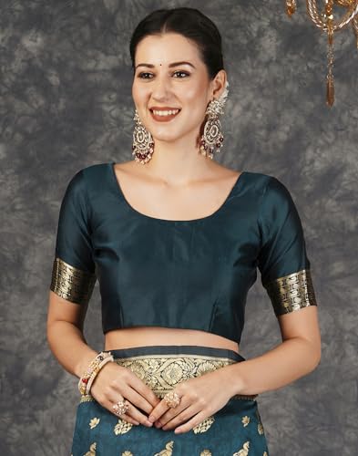 SIRIL Women's Georgette Zari Stripe Hot Fixing Stone Work Saree With Unstitched Blouse Piece