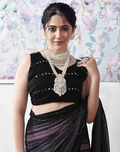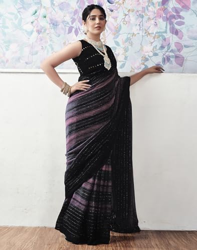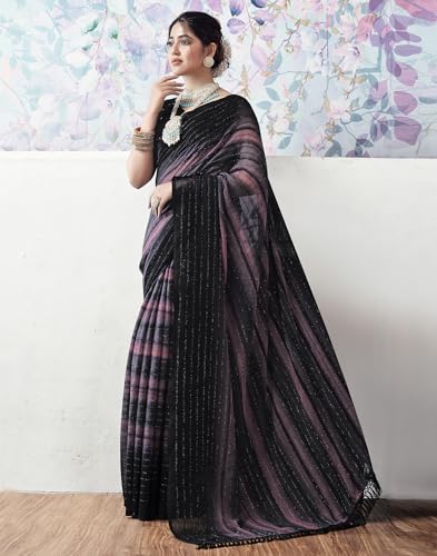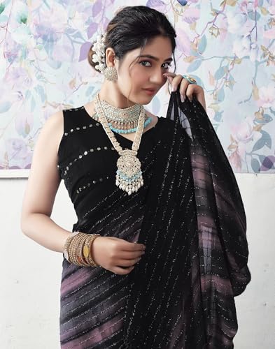 SIRIL Women's Georgette Printed Sequence Work Saree With Unstitched Blouse Piece