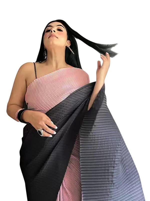 SIRIL Women's Georgette Printed Zari Striped Ready to Wear One Minute Pre Pleated Saree With Unstitched Blouse Piece