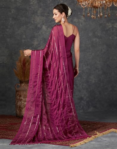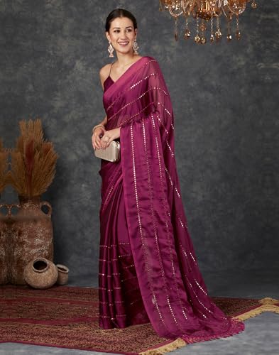 SWORNOF Women's Woven Self Design Cotton Katan Silk Saree With Unstich Blouse Piece