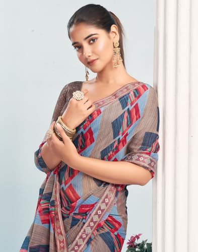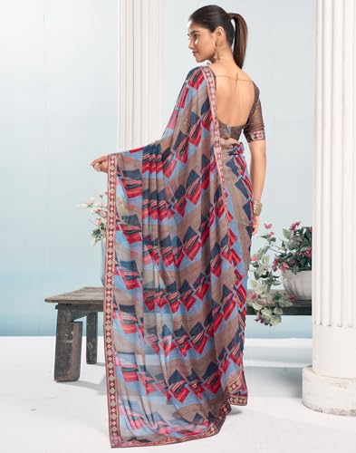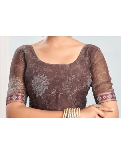 SIRIL Women's Georgette Hot Fixing Stone Work Saree With Unstitched Blouse Piece
