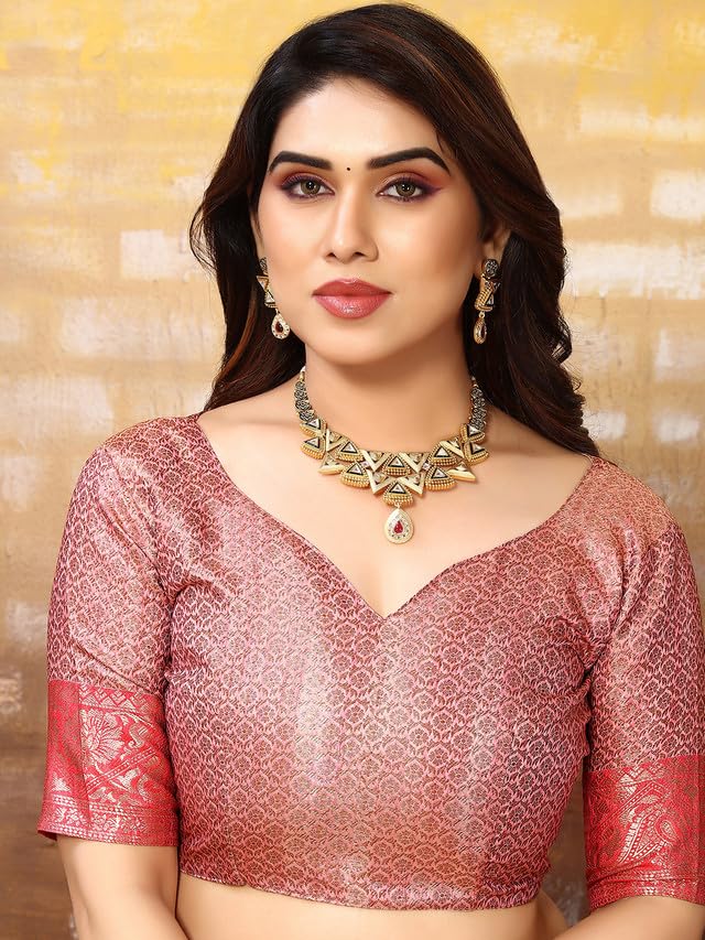 SIRIL Women's Georgette Zari Stripe Hot Fixing Stone Work Saree With Unstitched Blouse Piece