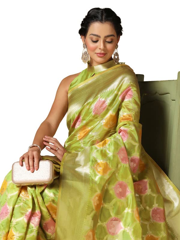 Sidhidata Women's Temple Border Kota Doria Cotton Manipuri Saree With Unstiched Blouse Piece