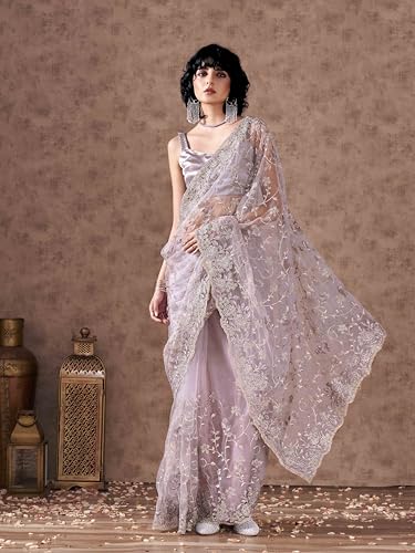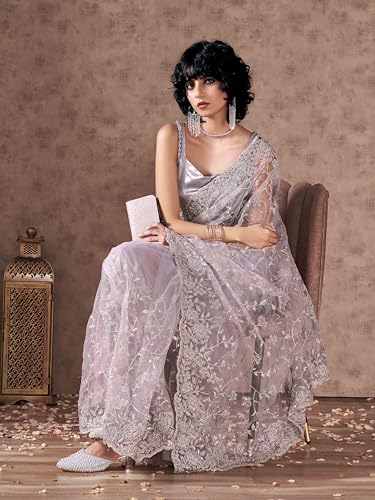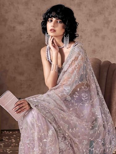 SIRIL Women's Georgette Bandhani Printed Saree With Unstitched Blouse Piece
