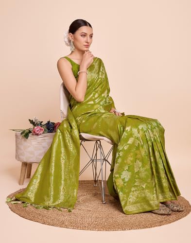 SIRIL Women's Foil Printed Georgette Saree with Unstitched Blouse Piece