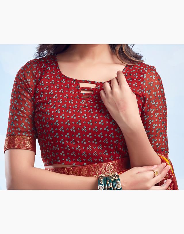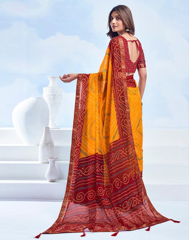 SIRIL Women's Georgette Leheriya Printed Embroidery Lace Boarder Saree With Unstitched Blouse Piece