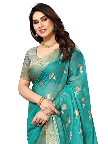 SIRIL Women's Chiffon Hot Fixing Saree With Unstitched Blouse Piece