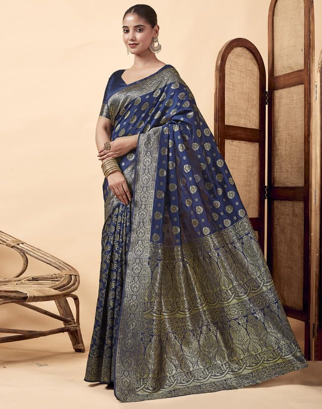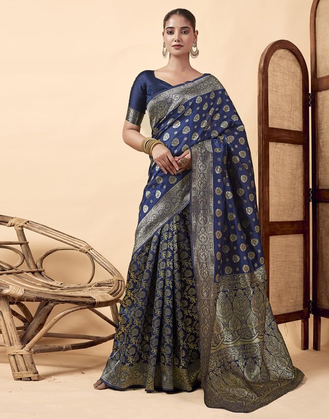 SIRIL Women's Banarasi Silk Blend Kanjivaram Jacquard Saree With Unstitched Blouse Piece