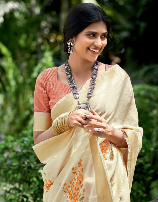 SIRIL Women's Dola Silk Foil Printed Saree With Unstitched Blouse Piece
