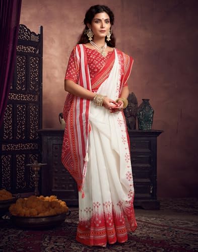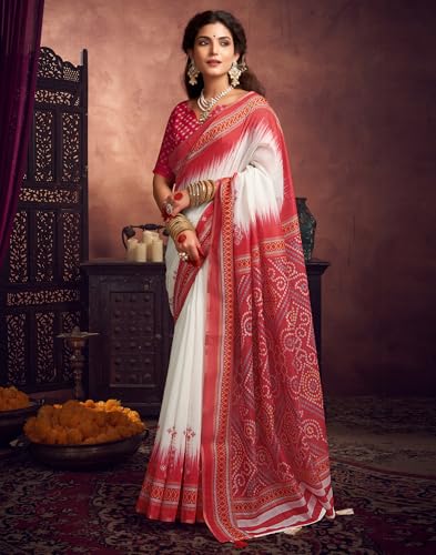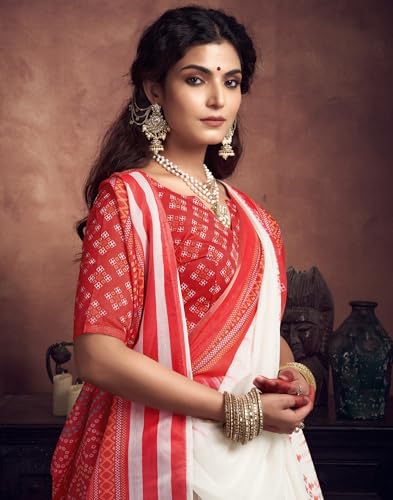 SIRIL Women's Chiffon Hot Fixing Saree With Unstitched Blouse Piece
