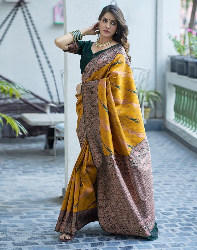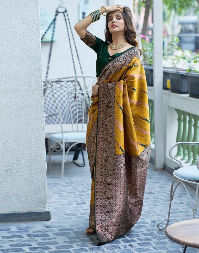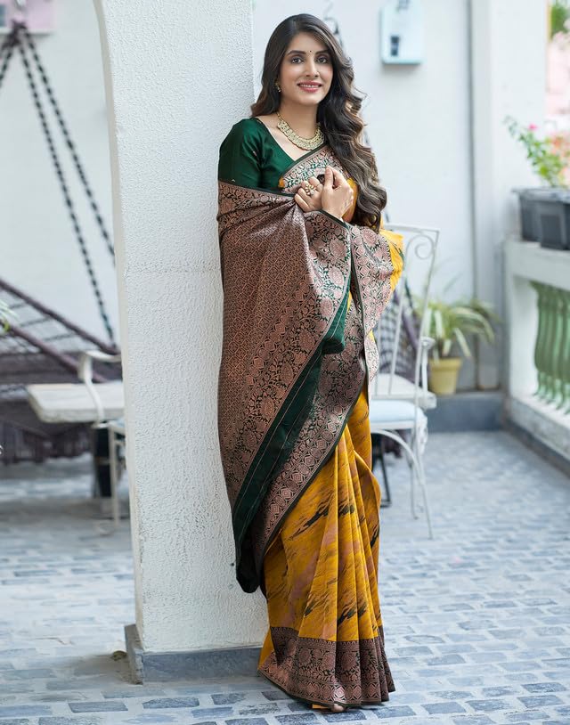 SWORNOF Women's kanjivaram banarasi silk saree for festival Wedding silk with rich pallu Design sarees for women with Unstitched blouse piece