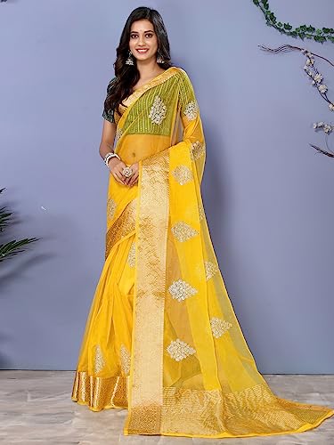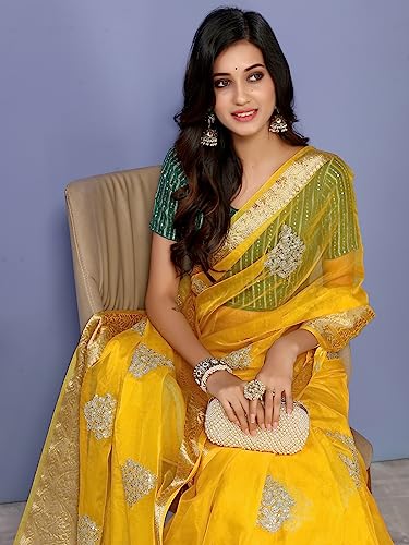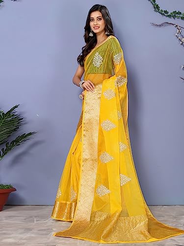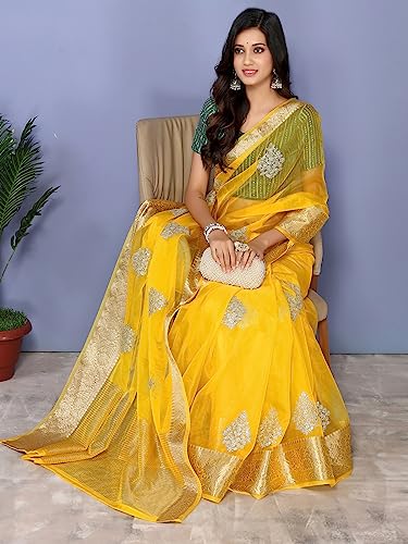 SWORNOF Womens Kanjivaram Banarasi Silk Saree Patola saree with Unstitched blouse piece