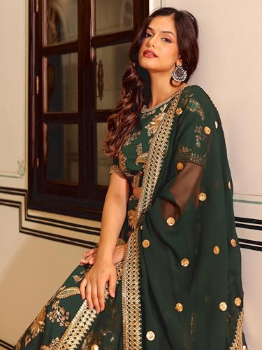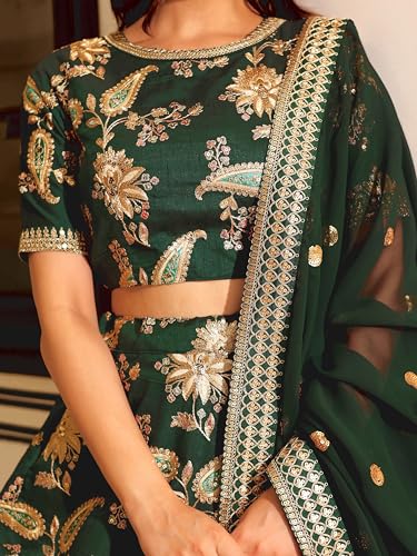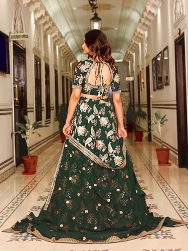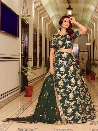 Zeel Clothing Women's Thread Sequins Embroidery Net Lehenga Choli with Dupatta Semi-stitched (2129-Blue-Wedding-Bridal-Stylish-Latest; Free Size)