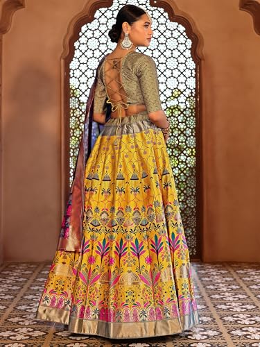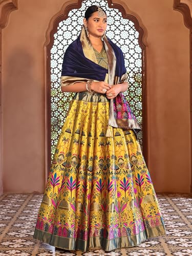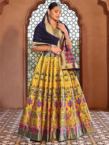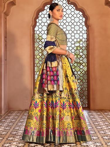 Nena Fashion Women's Velvet Semi-stitched BLACK AND GOLD LEHENGA SET