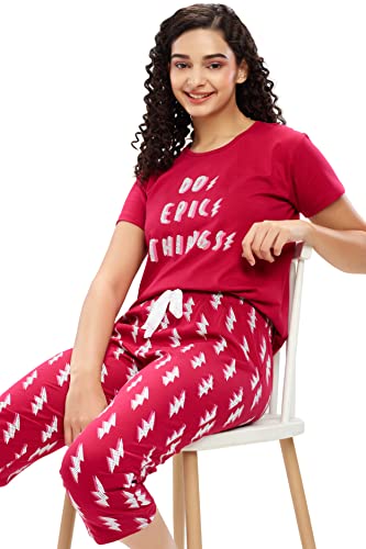 Real Basics Women's Cotton Printed Top and Shorts Set