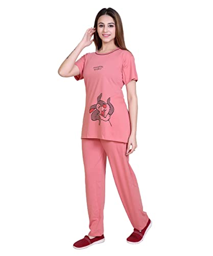 LAKESE Rayon Night Suit for Women's Printed Night Dress Set of Shirt & Pyjama Sleep wear Loungewear Set for Womens