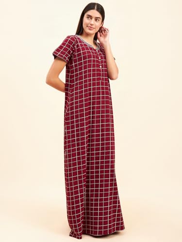 9shines Label Women's Cotton Knee Length Short Nighty - Graphic Print Nightdress with Right Side Pocket - Combo Pack of 2 (L,XL,2XL,3XL,5XL,7XL Plus Sizes)