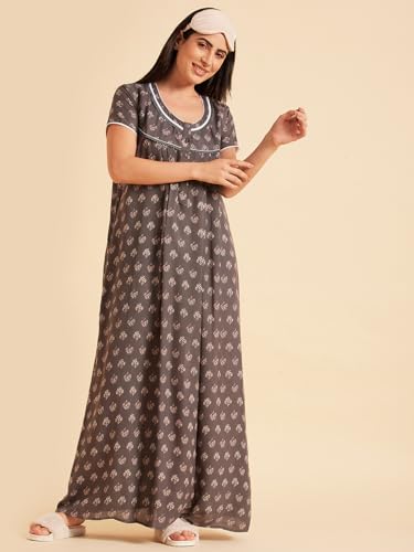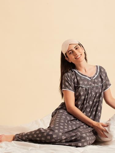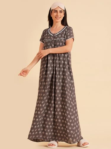 NIHSAMAH Core Style Cotton Night Gown for Women — Premium Printed Stylish Long Cotton Nighty | Comfortable & Fancy Sleepwear, Nightwear, Maxi