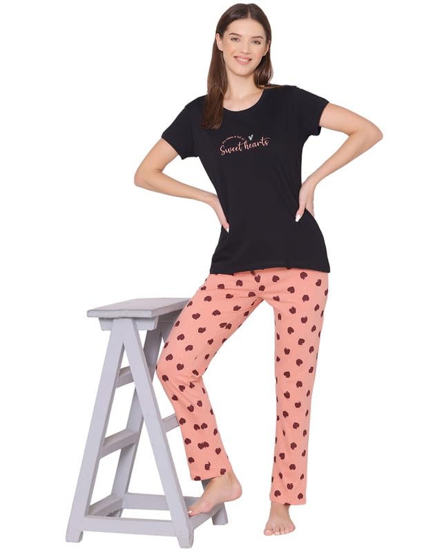 Fflirtygo Top and Short Set for Women Night Wear, Lounge Wear Printed Pure Cotton Top & Short Set, Printed Top and Shorts Set for Women Night Suit Set