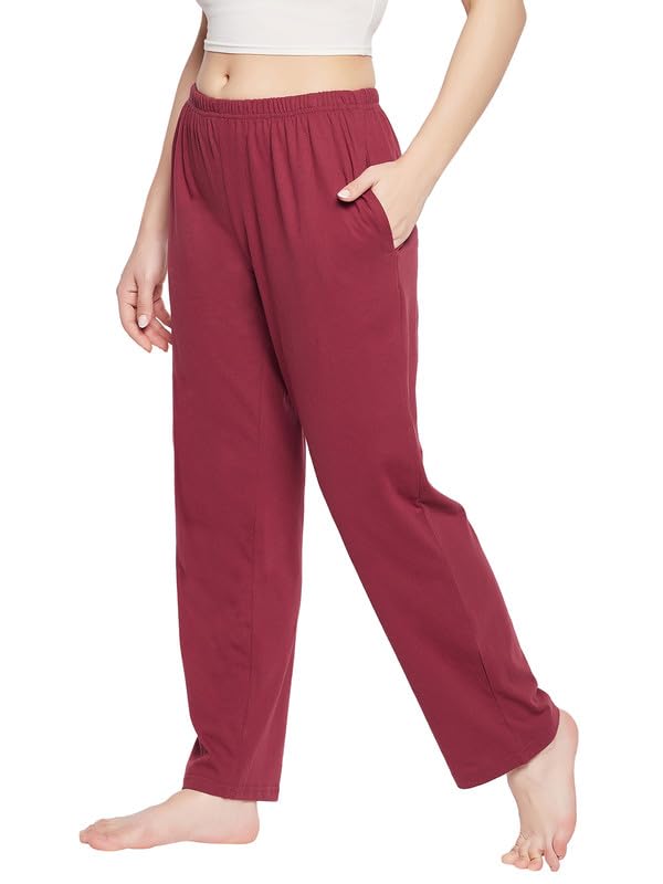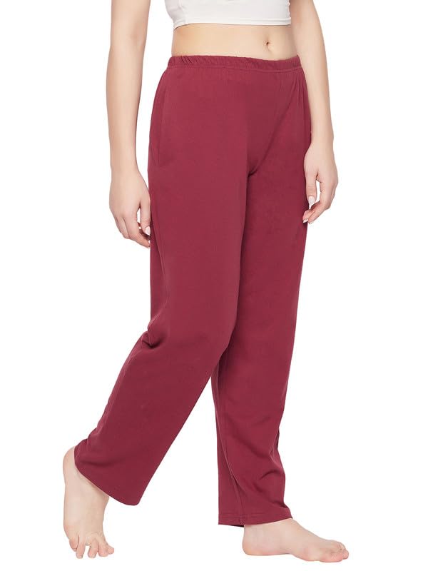 Enamor Essentials Slim Fit Mid Rise Stretch Cotton Basic Straight Leg Lounge Pant for Womens-E014
