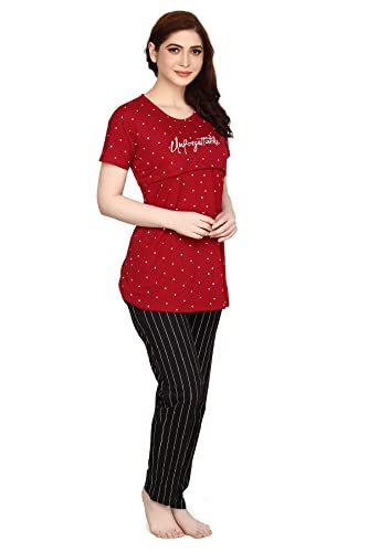 SAND DUNE Womens Straight Fit V-Neck Short Sleeves Nighty with Functional Pocket