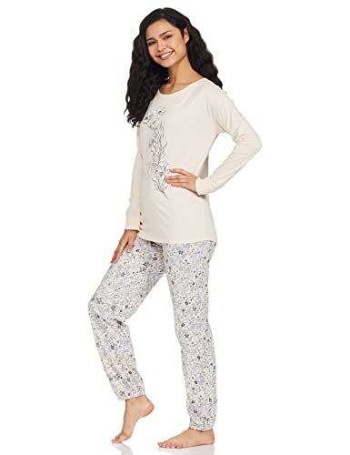 kasya Cotton Nighty for Women with Pockets | Premium Beige Printed Long Cotton Night Gown | Comfortable Maxi Dress | Fancy Sleepwear/Nightwear/Night Gown
