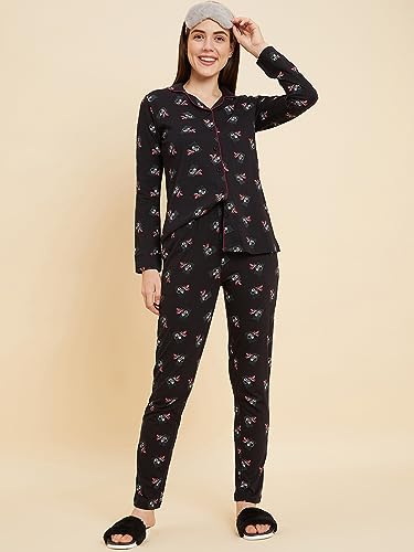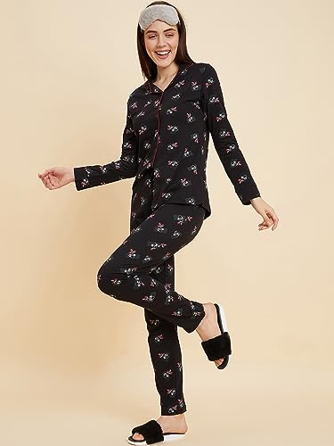 Buy That Trendz Combo Set 2 Pcs Women's Cotton Printed Top and All Over Print Capri Pyjama Set/Pajama Night Suit Set/Sleep wear Set/Loungewear Set Woke Up Black-Sweet Dreams Red