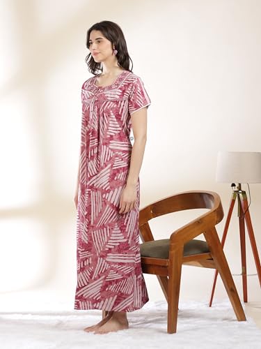 JAIPZZ APPARELS Women's Cotton All Over Print Maxi Plus Size Nighty (IFN-6321-3-6-Red-Pink_Pink Red_2XL)