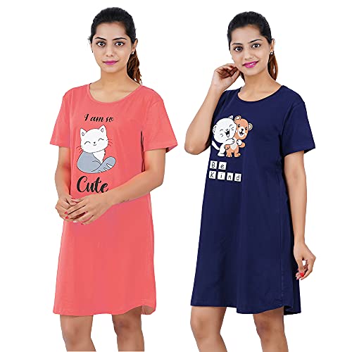 OSF Women's Nighty Printed Cotton Floral Maxi Round Neck Full Length Nightwear Night Gown (Pack of 1, NW0375)