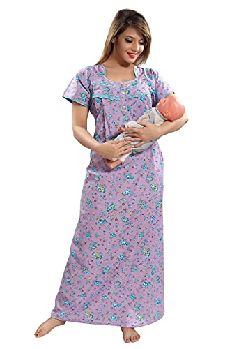 9shines Label Cotton Crush Pleated Nighty | Cotton Night Gown | Maxi | Floral Print with Embroidery On The Neck, Front Open Buttons & Pocket On The Right Side