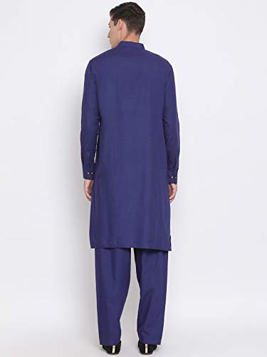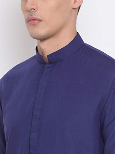 VASTRAMAY Mens Cotton Linen Kurta - Timeless Elegance for Eid & Holi Festivals | Solid Plain Weave Full Sleeves Mandarin Collar Kurta | Classic Design, Premium Comfort, and Versatile Style for Events