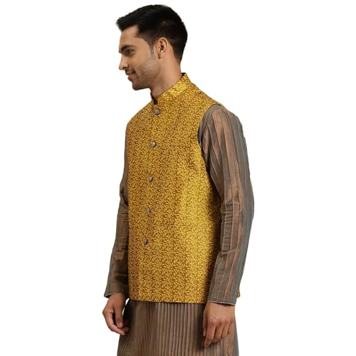 Vastraa Fusion Men's Digital Print Nehru Jacket In Silk Ethnic Festive Modi Waistcoat Look