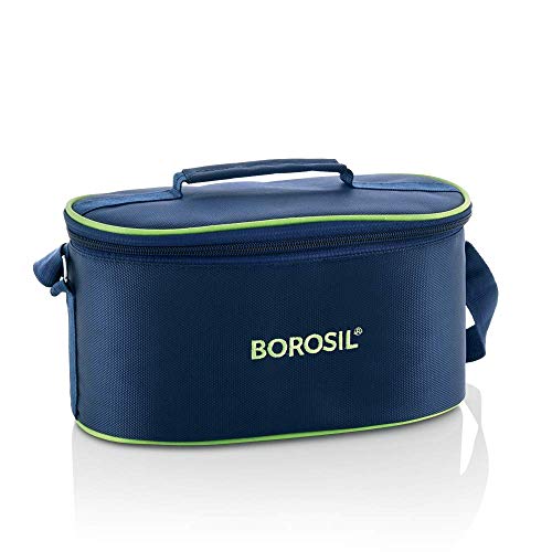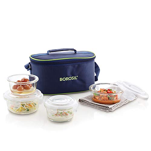 Borosil Prime Glass Lunch Box Set of 3, 400 ml, Round, Microwave Safe Office Tiffin & Stainless Steel Hydra Trek - Vacuum Insulated Flask Water Bottle, Black, 700ML Combo