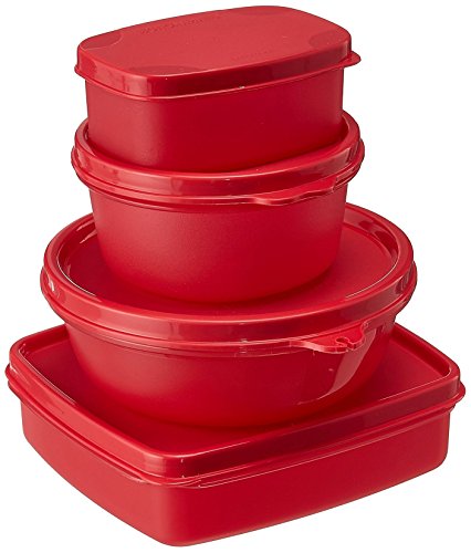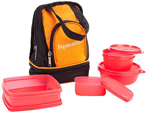 Signoraware Best Jumbo Plastic Lunch Box with Insulated Bag Set, 200ml, 4-Pieces, Red