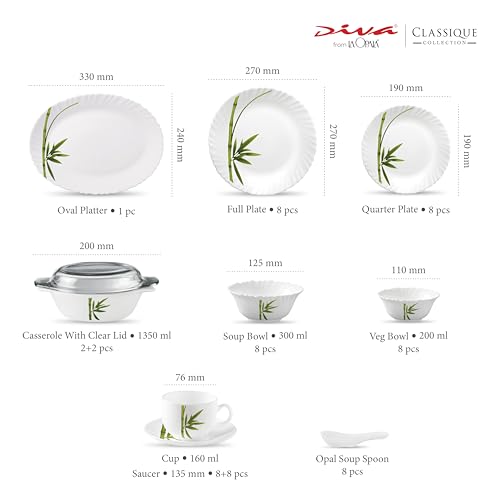 La Opala Diva, Classique Collection, Opal Glass Dinner Set 27 pcs, Blue Mystique, White