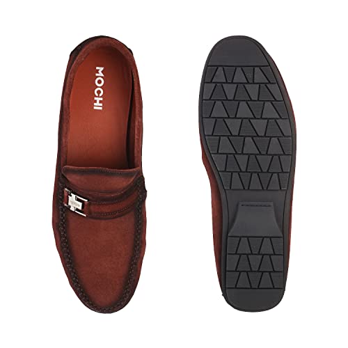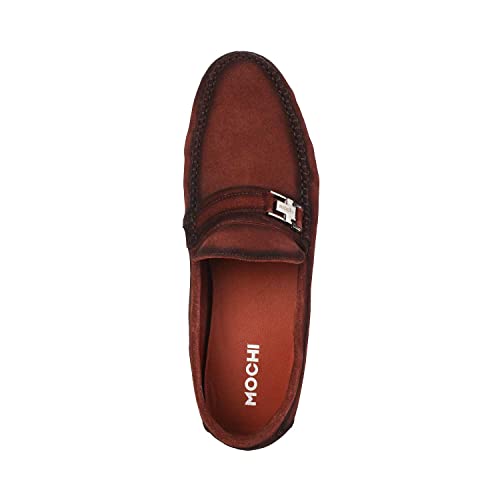 LOUIS STITCH Formal Loafer Shoes for Men| Slip-On Moccasins with Embossed Detailing | Solid Russet Tan | Ideal for Business, Casual, Parties (LSRGMCSQGY)