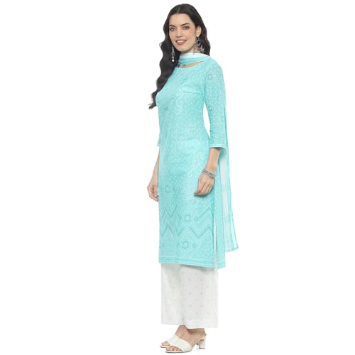Miss Ethnik Women's Cream Chinon Stitched Top With Stitched Chinon Bottom and Chinon Dupatta Full Sleeve Embroidered Anarkali Kurta (ME-1191)