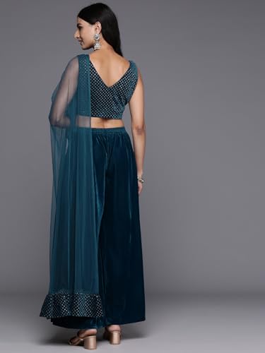 RAJMANDIRFABRICS Women's Cotton Thread Work With Lace Flared Kurta Pant With Dupatta Set