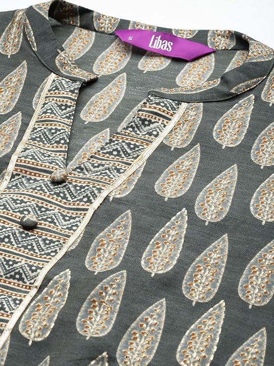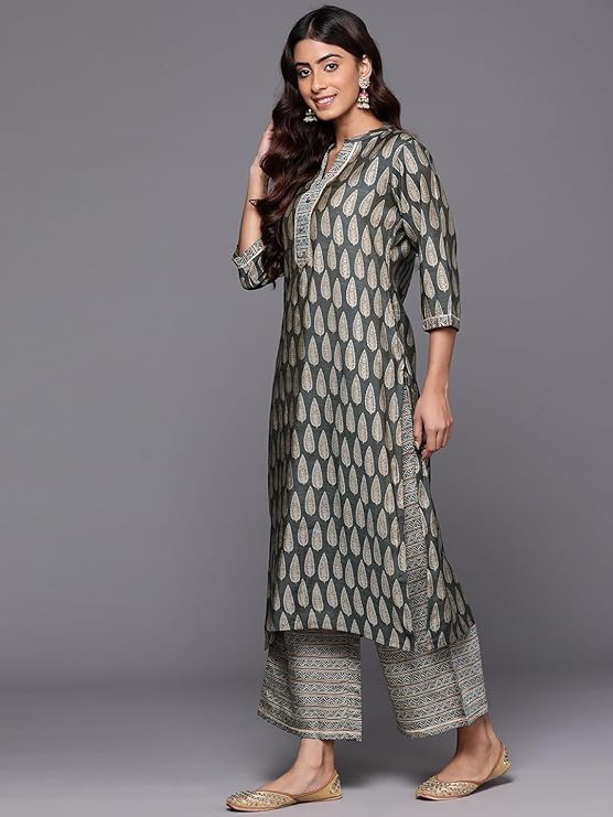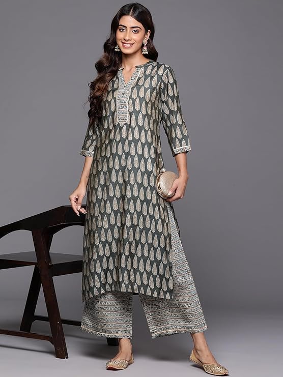 RAJMANDIRFABRICS Women's Cotton Embroidered With Lehriya Printed Straight Kurta Pant With Dupatta Set