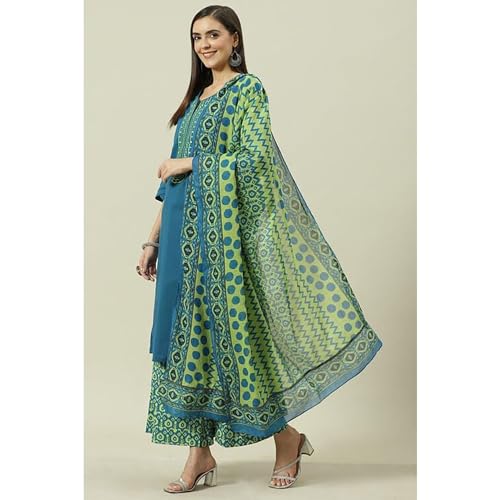 Libas Off White Printed Cotton ALine Kurta With Palazzos